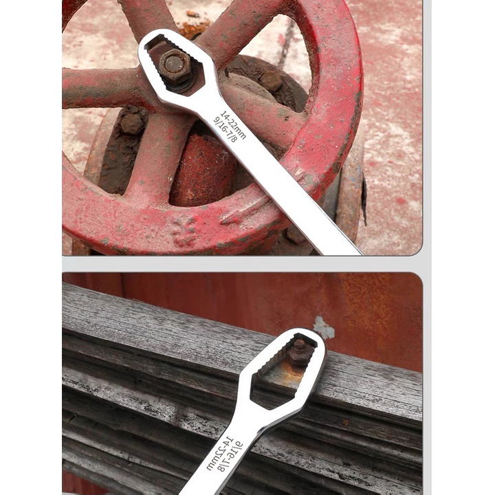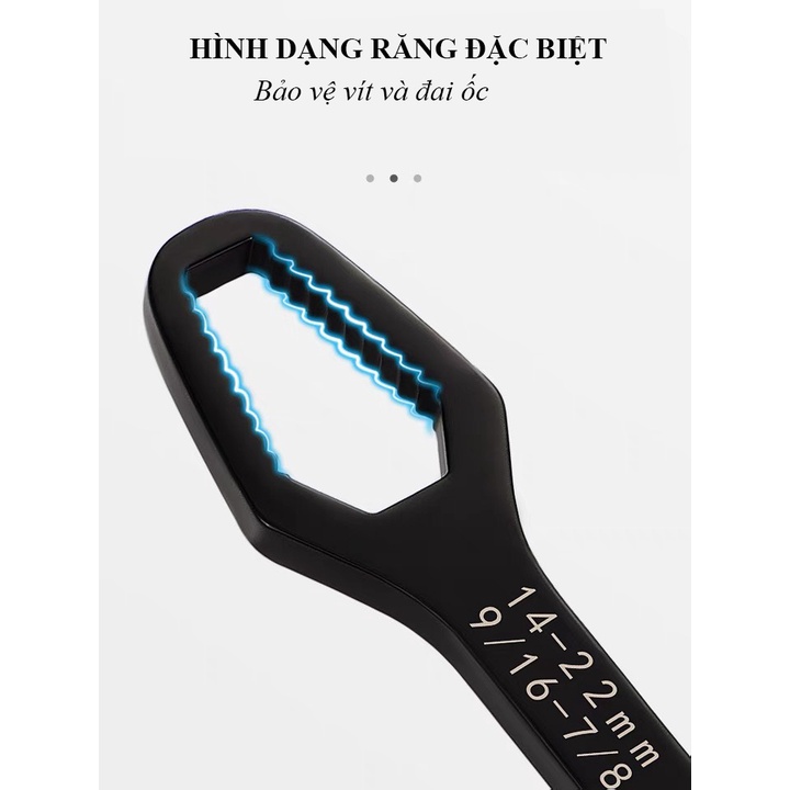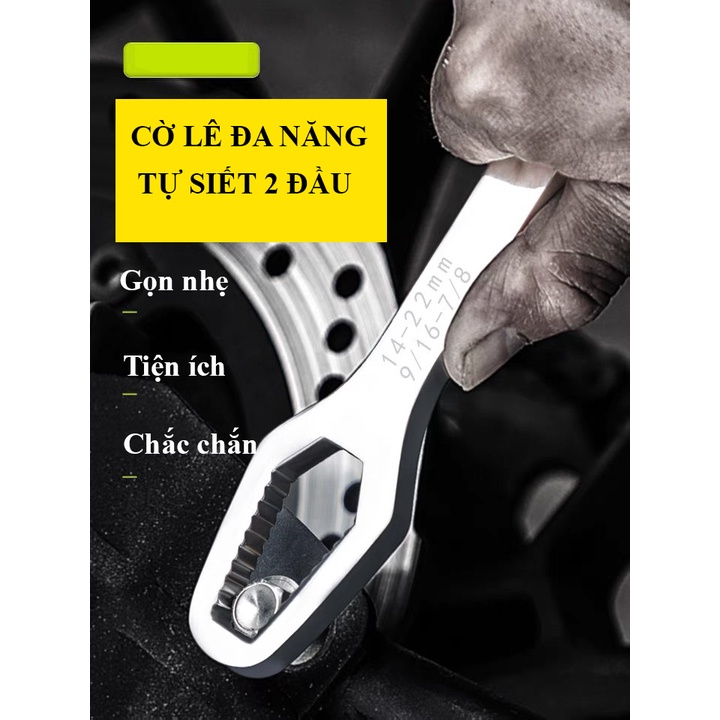 Khi cầm chiếc cờ lê đa năng thế hệ mới này trên tay, các anh sẽ vặn mở được đủ các loại cỡ ốc từ to đến bé. Cờ lê có 2 đầu, 1 đầu mở ốc nhỏ từ phi 8 đến 13, 1 đầu mở ốc to từ phi 14 đến 22.