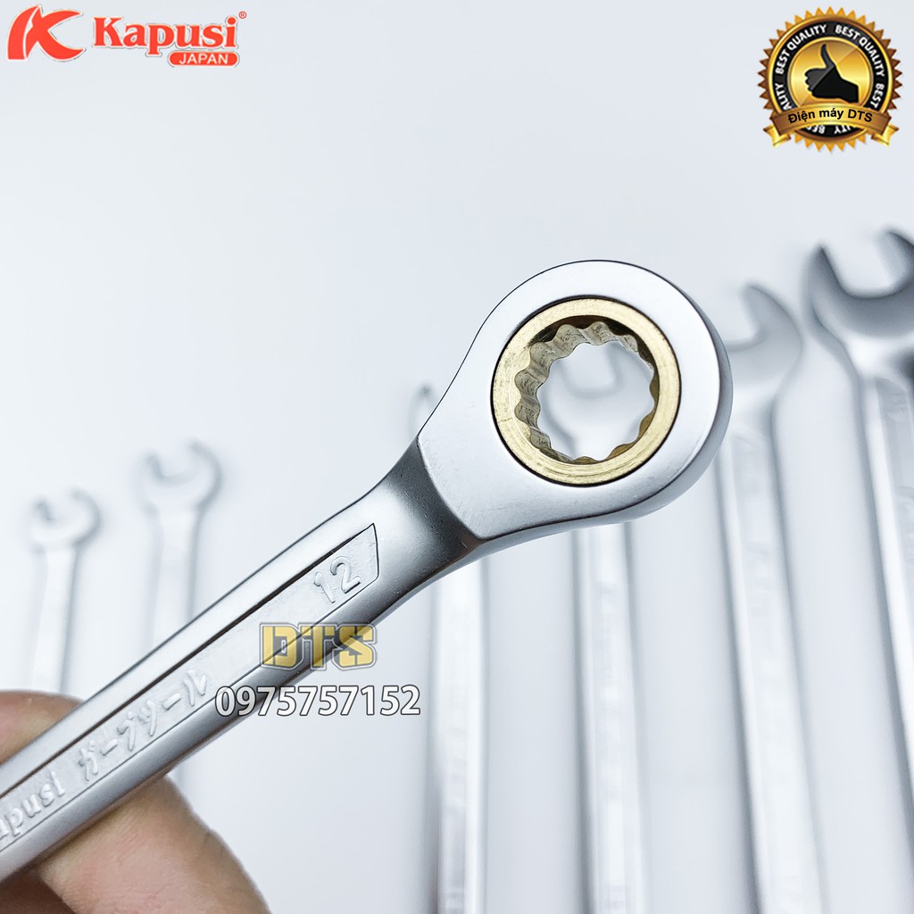 Bộ cờ lê tự động Kapusi Japan 8-19mm, thép CR-V chịu lực cao 50BV30, bánh cóc 72 răng - Cờ lê vòng miệng tự động 360 độ