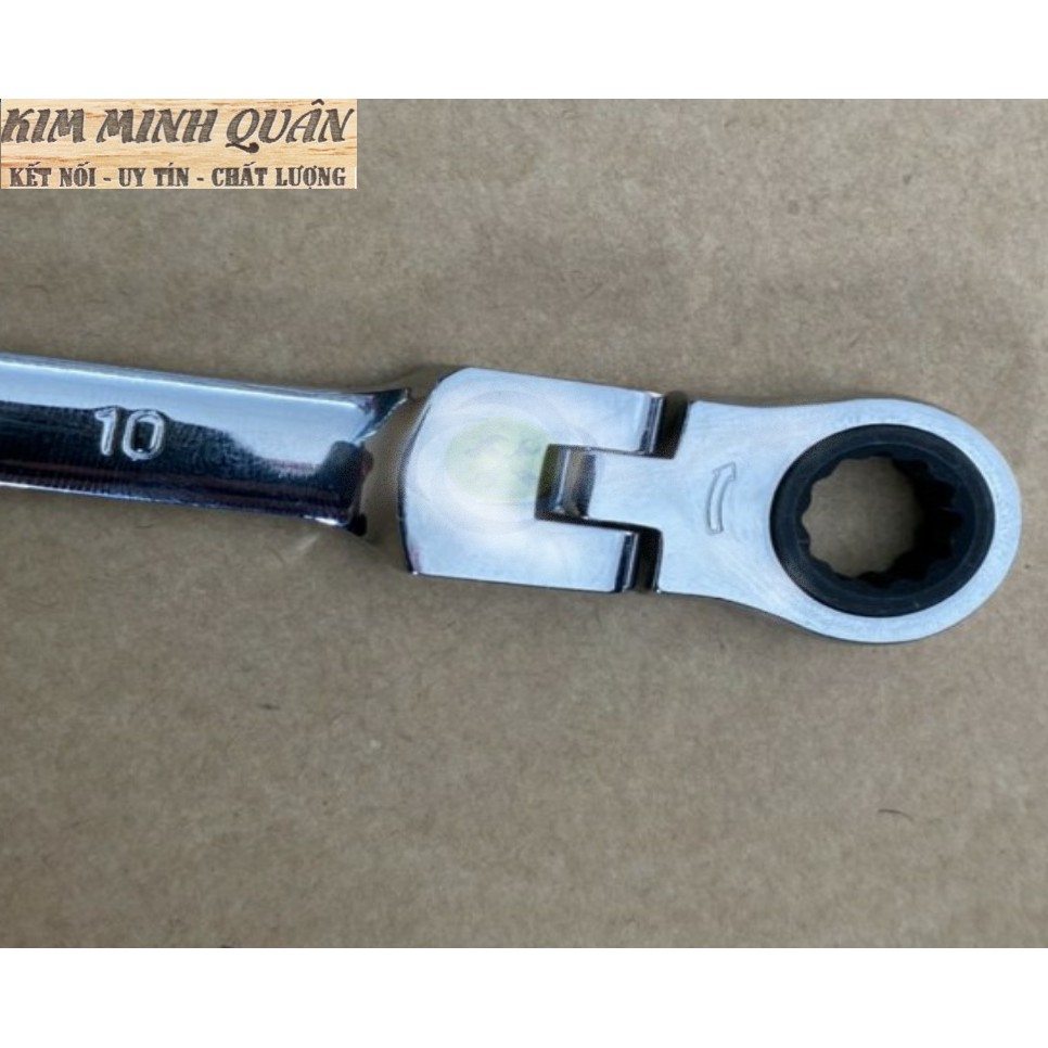 Thiết kế 1 đầu miệng 10mm và 1 đầu vòng tự động lắc léo 10mm có thể vặn góc 90°