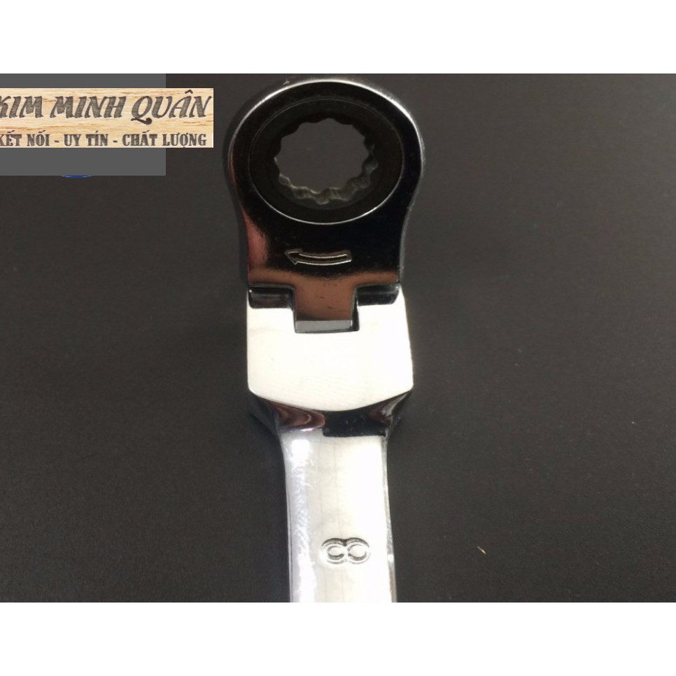 Thiết kế 1 đầu miệng 8mm và 1 đầu vòng tự động lắc léo 8mm có thể vặn góc 90°
