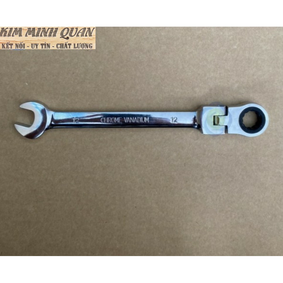 Thiết kế 1 đầu miệng 12mm và 1 đầu vòng tự động lắc léo 12mm có thể vặn góc 90°