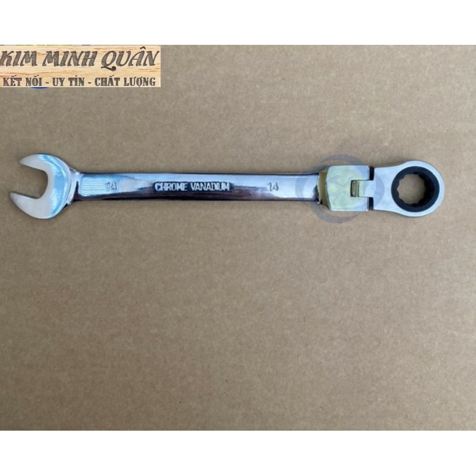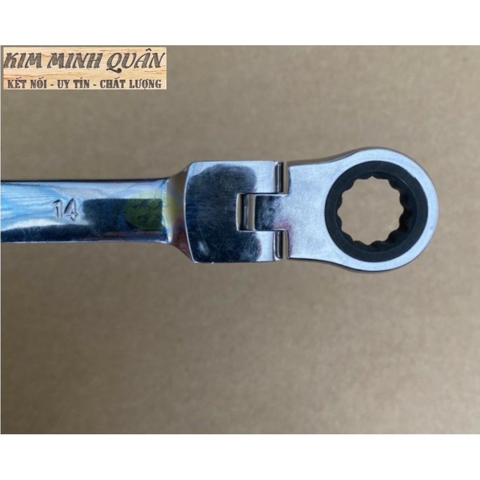 Thiết kế 1 đầu miệng 14mm và 1 đầu vòng tự động lắc léo 14mm có thể vặn góc 90°