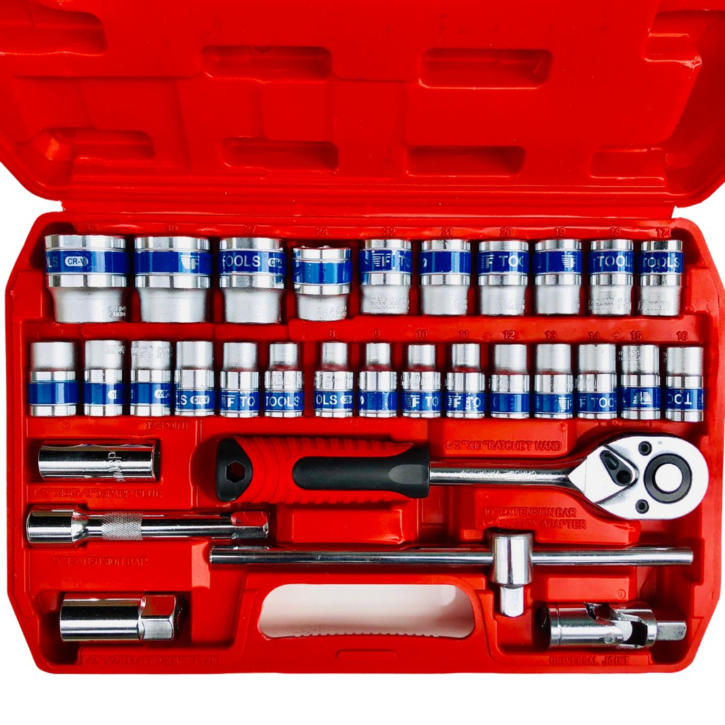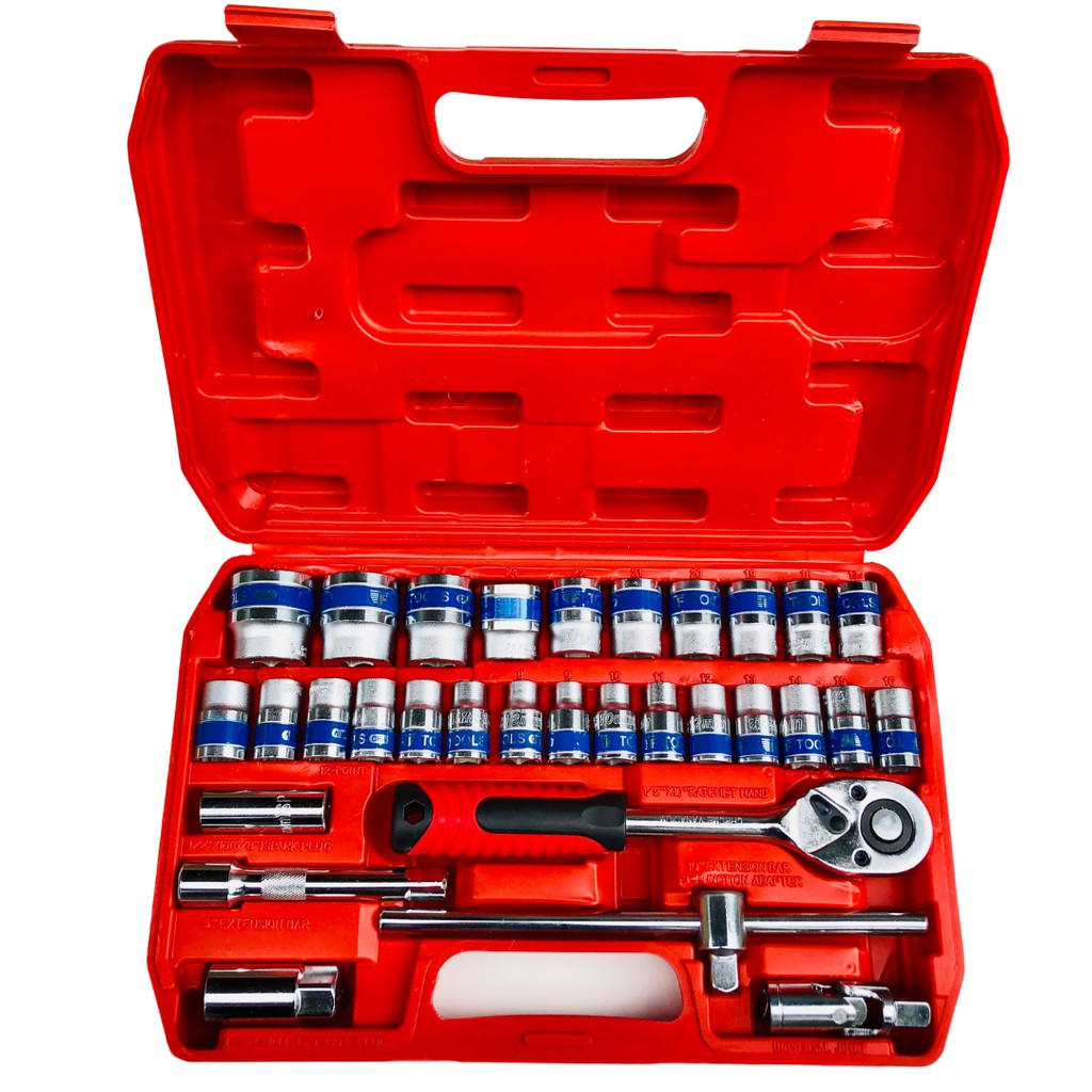 Bộ cờ lê tuýp 37 chi tiết bộ khẩu dụng cụ sửa chữa đa năng chân 1/2" cle chòng 8-19mm, tuýp 8-32mm