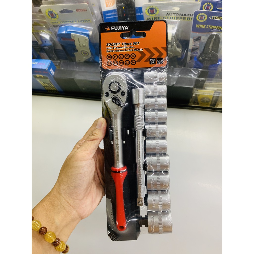 Bộ cờ lê và đầu khẩu 3/8 10 món - AST3-10A - Fujiya - Chính hãng