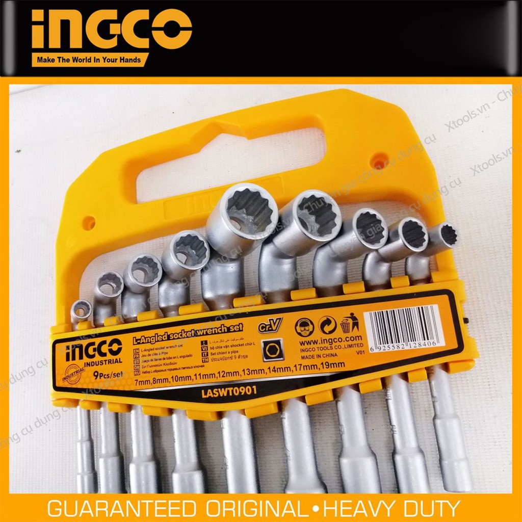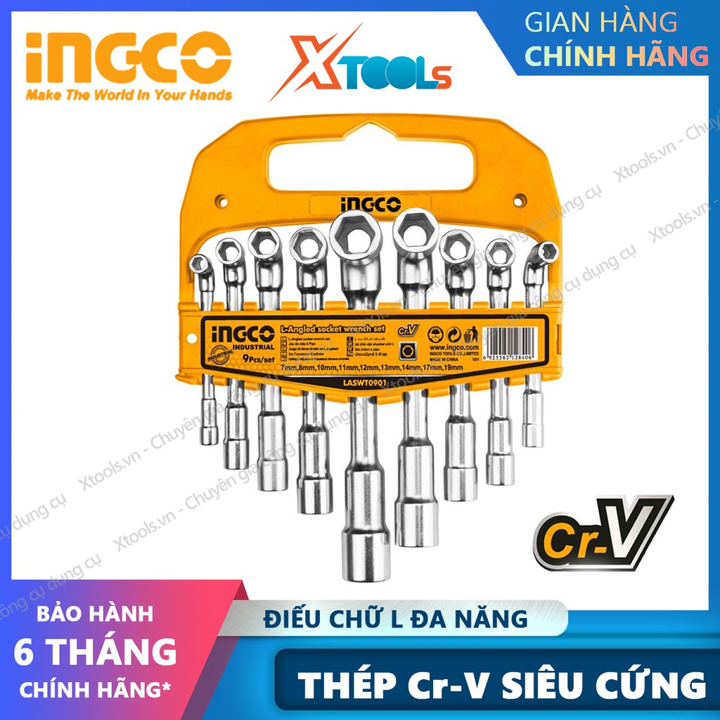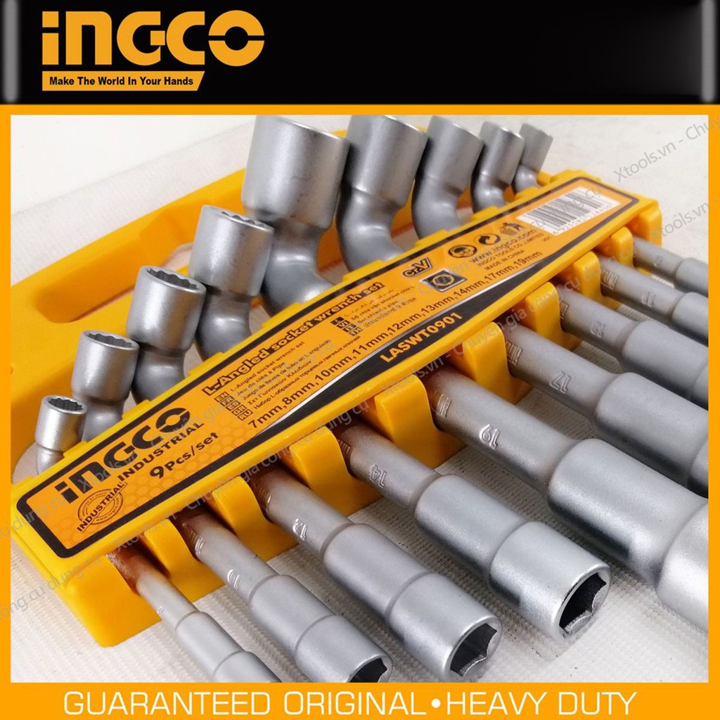 Bộ cờ lê vặn góc chữ L 9 chi tiết INGCO LASWT0901 7-19mm điếu chữ L thép Cr-V chống rỉ sét sửa chữa xe máy ô tô cơ khí