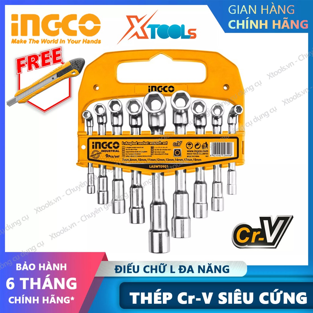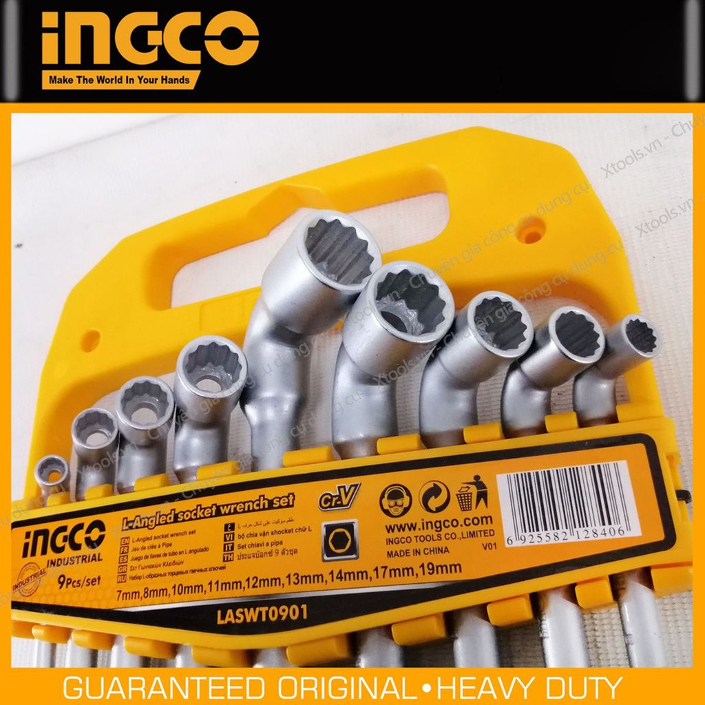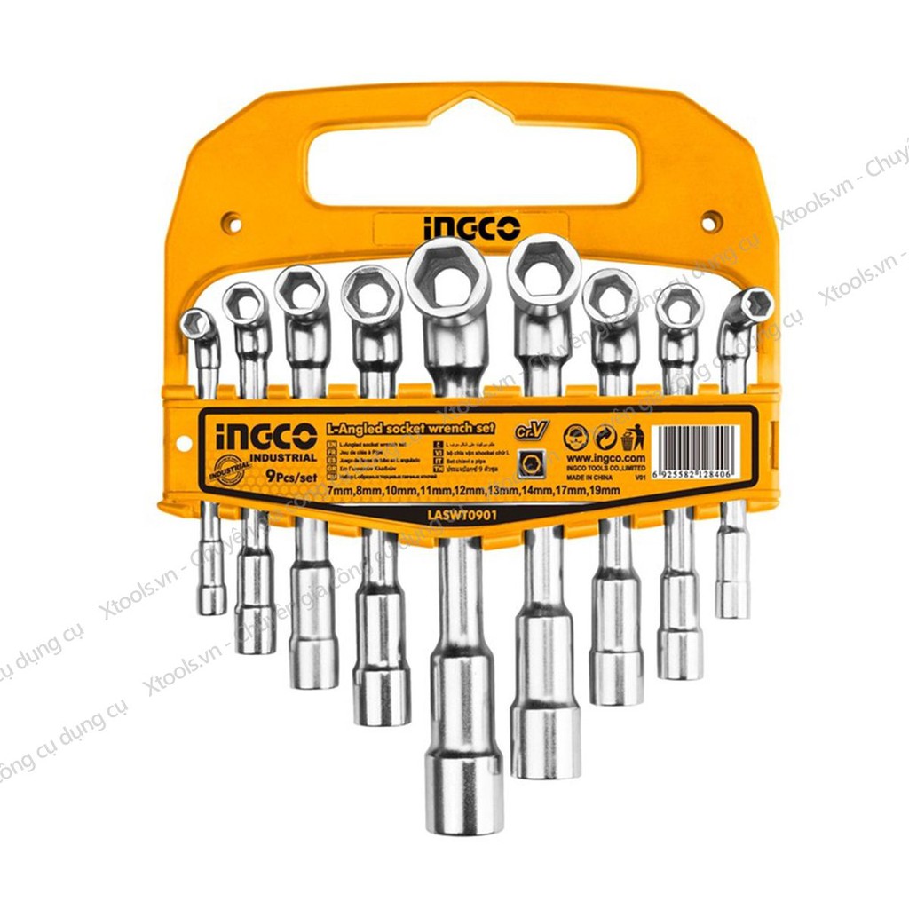 Bộ cờ lê vặn góc chữ L 9 chi tiết INGCO LASWT0901 7-19mm điếu chữ L thép Cr-V chống rỉ sét sửa chữa xe máy ô tô cơ khí