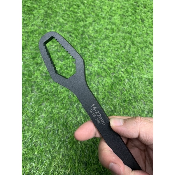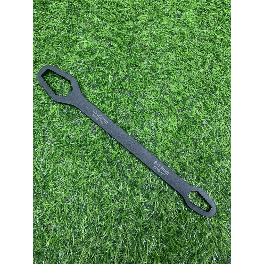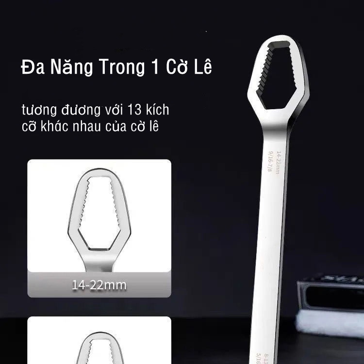 Khi cầm chiếc cờ lê đa năng thế hệ mới này trên tay, các anh sẽ vặn mở được đủ các loại cỡ ốc từ to đến bé. Cờ lê có 2 đầu, 1 đầu mở ốc nhỏ từ phi 8 đến 13, 1 đầu mở ốc to từ phi 14 đến 22.