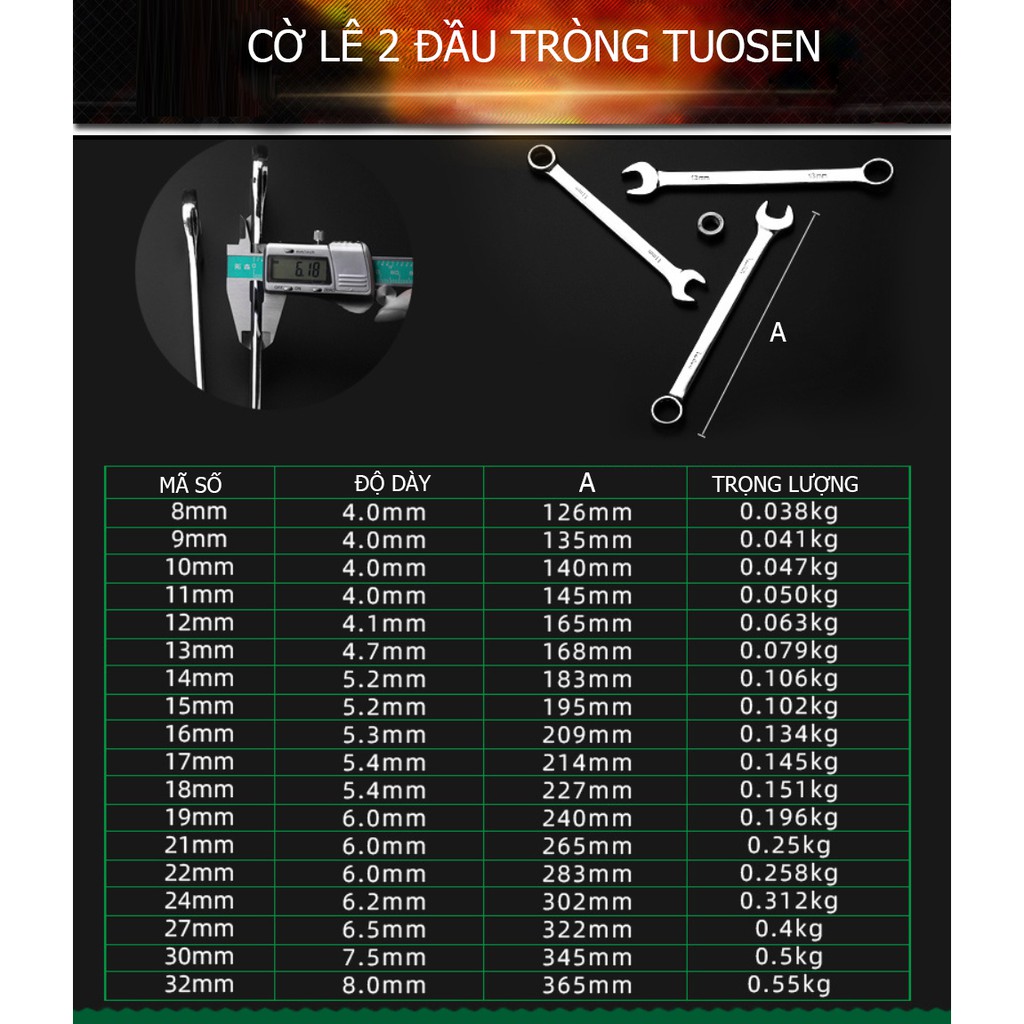 Nhà cửa & Đời sống > Dụng cụ & Thiết bị tiện ích > Dụng cụ > Bộ cờ lê || Cờ lê với 2 đầu tròng TUOSEN , Cờ lê bánh cóc, đủ size từ 6mm tới 41mm - Một sản phẩm của TUOSENCòn hàng