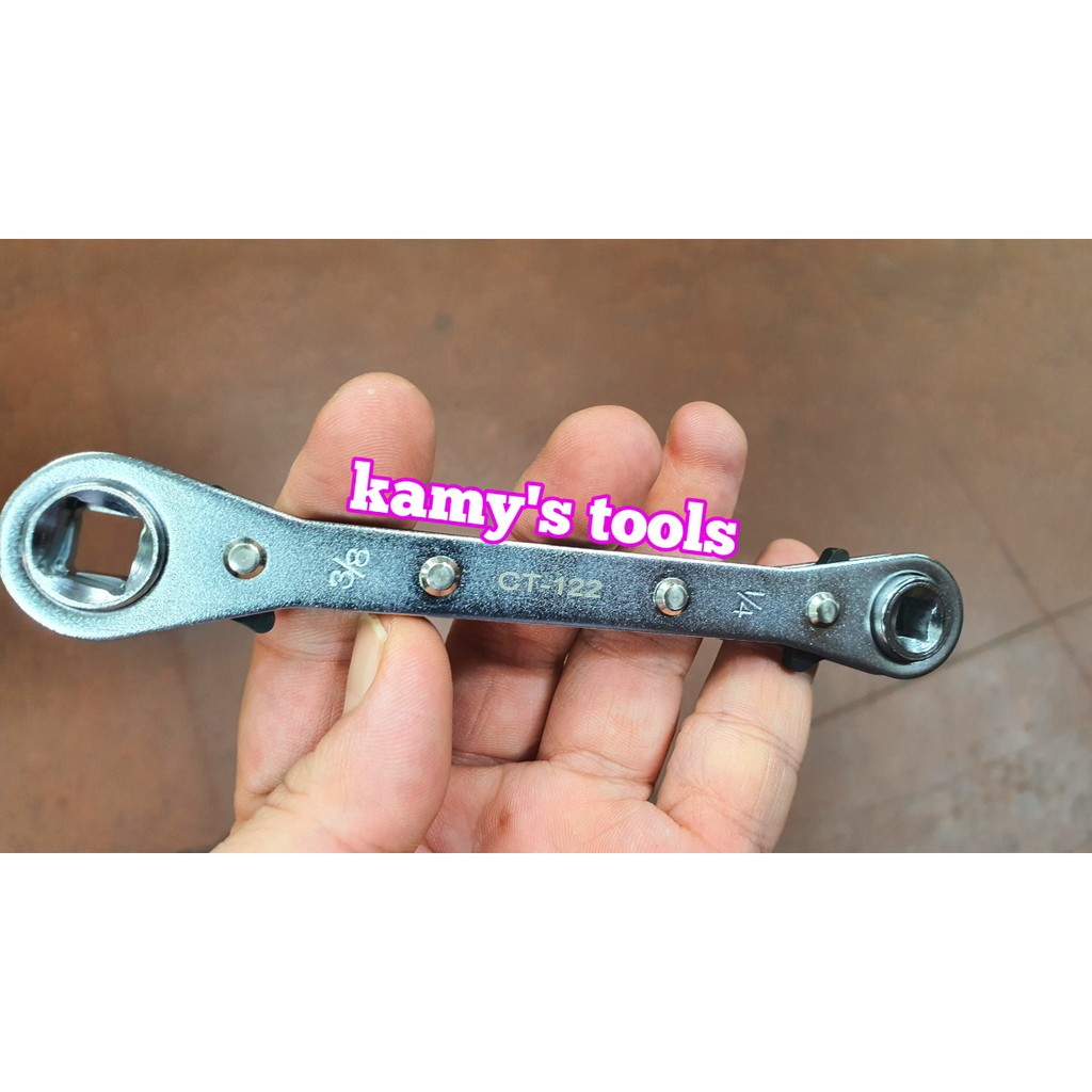 Kamy’s tools chuyên phân phối các cờ lê vòng 4 đầu mở van ga lạnh ct-122 asian first band Taiwan hay còn được gọi là van mở ga lạnh ct-122 asian first brand Taiwan, chìa khóa vòng mở van ga lạnh ct-122 asian first brand Taiwan, cờ lê vòng 4 đầu mở van ga lạnh ct-122, van mở ga lạnh ct-122, van mở ga lạnh 4 đầu ct-122, là dụng cụ cầm tay chuyên dùng để tháo mở van ga lạnh có model ct-122 với thương hiệu rất nổi tiếng Asian first brand sản xuất tại đài loan. Cờ lê vòng 4 đầu mở van ga lạnh ct-122 asian first brand Taiwan bao gồm 4 đầu vuông các size ¼”, 3/8”, 5/16”, 3/16” sử dụng cơ chế bánh răng đảo chiều trái phải hoạt động qua một cơ chế khóa đẩy lên đẩy xuống để đảo chiều. Cờ lê vòng 4 đầu mở van ga lạnh ct-122 asian first brand Taiwan được sử dụng rất phổ biến trong ngành công nghiệp ga lạnh. Cờ lê vòng 4 đầu mở van ga lạnh ct-122 asian first brand Taiwan được sản xuất chính hãng đài loan với chất lượng thép và cơ chế bánh răng linh hoạt giúp cho việc cầm nắm chắn chắn sử dụng trong một thời gian dài với chất lượng cao. Hãy liên hệ với kamy’s tools để biết thêm thông tin chi tiết sản phẩm cờ lê vòng 4 đầu mở van ga lạnh ct-122 asian first brand Taiwan.Giá MIS