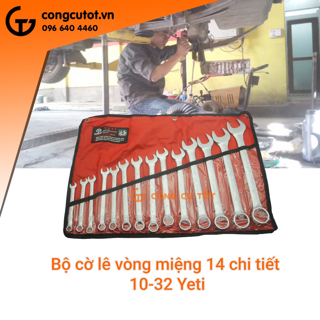 Bộ cờ lê vòng miệng Yeti gồm 14 cỡ cờ lê từ 10mm-32mm phù hợp với nhiều công việc sửa chữa, lắp ráp, bảo trì máy móc, thiết bị, xe cộ,...Sản phẩm là bộ dụng cụ hữu ích trong cuộc sống hàng ngày. Bộ cờ lê được làm bằng thép siêu cứng có độ bền cao, không bị biến dạng trong quá trình sử dụng. Gia công tỉ mỉ, sản xuất theo tiêu chuẩn Mỹ. Mỗi dụng cụ tương ứng với một kích cỡ từ 10mm đến 32mm nên vặn được nhiều loại ốc vít, bu lông. Kích thước nhỏ gọn cầm vừa tay người dùng vì vậy rất thuận tiện trong các thao tác xoay vặn.. Tính ứng dụng cao, sử dụng hiệu quả trong nhiều công việc sửa chữa máy móc, thiết bị, xe cộ,...Các đặc điểm, thông số kỹ thuật của sản phẩm