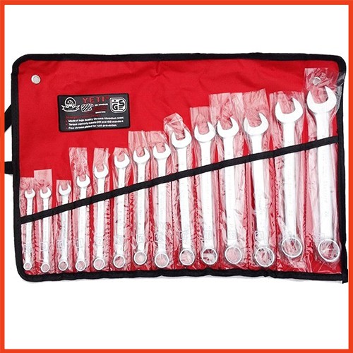 Gồm 14 chiếc cờ lê có một đầu hở và một đầu tròn với vòng miệng khác nhau như: 8, 9, 10, 11,12,13,14,15, 16, 17, 18, 19, 22, 24 rất đa dạng để bạn có thể sử dụng để sửa chữa nhiều máy móc khác nhau. Giúp bạn mau chóng hoàn thành công việc một cách tốt nhất mà không tốn quá nhiều thời gian.