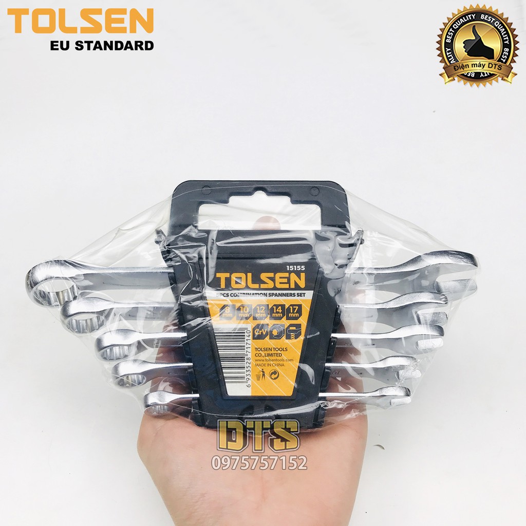- Bộ vòng miệng chrome vanadium Tolsen 15155 được thiết kế 2 đầu vòng miệng với đầy đủ kích thước, giúp bạn dễ dàng mở các loại bu lông, ốc vít có kích thước tương đương trong máy móc, thiết bị. Bộ sản phẩm gồm 5 dụng cụ với các cỡ: 8mm, 10mm, 12mm, 14mm và 17mm.