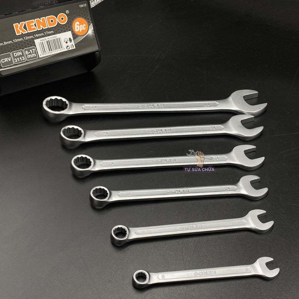 Bộ cờ lê vòng miệng 6 chi tiết KENDO 15412 6-17mm, chất liệu CR-V siêu cứng, momen xoắn cao, đạt chuẩn công nghệ từ Đức