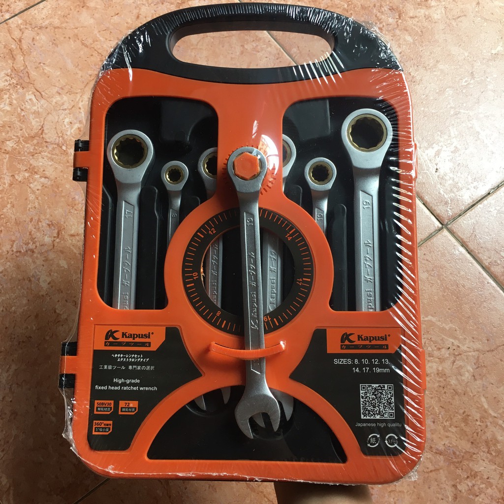 ⚽️ Bộ cờ lê vòng miệng tự động đảo chiều 7 chi tiết hãng Kapusi Nhật Bản bao gồm các kích cỡ sau: 8-10-12-13-14-17-19mm