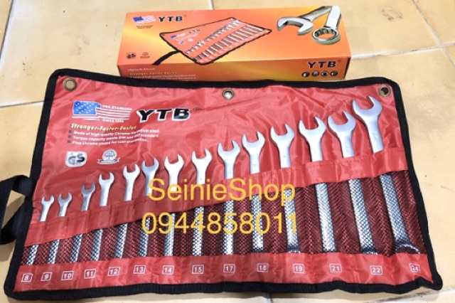 Bộ cờ lê vòng miệng 8-24 YTB cao cấpBộ sản phẩm gồm 14 cờ lê 1 đầu hở và 1 đầu vòng: 8mm, 9mm, 10mm, 11mm, 12mm, 13mm, 14mm, 15mm, 16mm,17mm, 19mm, 21mm, 22mm, 24mm.