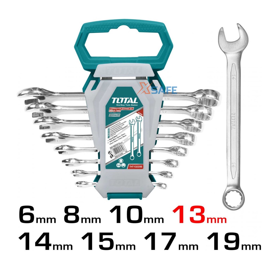 Bộ cờ lê vòng miệng 8 chi tiết TOTAL THT102286-I 6-19mm thiết kế nhỏ gọn Cờ lê chất liệu Cr-V siêu cứng chống rỉ