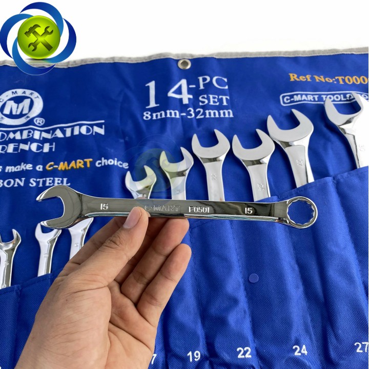Nhà cửa & Đời sống > Dụng cụ & Thiết bị tiện ích > Dụng cụ > Bộ cờ lê || Bộ cờ lê vòng miệng C-Mart T0006 có 14 cây từ 8-32mmCòn hàng