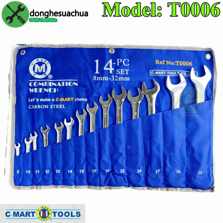 Bộ cờ lê vòng miệng C-Mart T0006 có 14 cây từ 8-32mmBộ cờ lê vòng miệng C-mart T0006 số lượng 14pcs . Bộ cờ lê vòng miệng được chế tạo từ thép cao cấp rất bền, chắc chắn, Kích thước từ 8-32mm