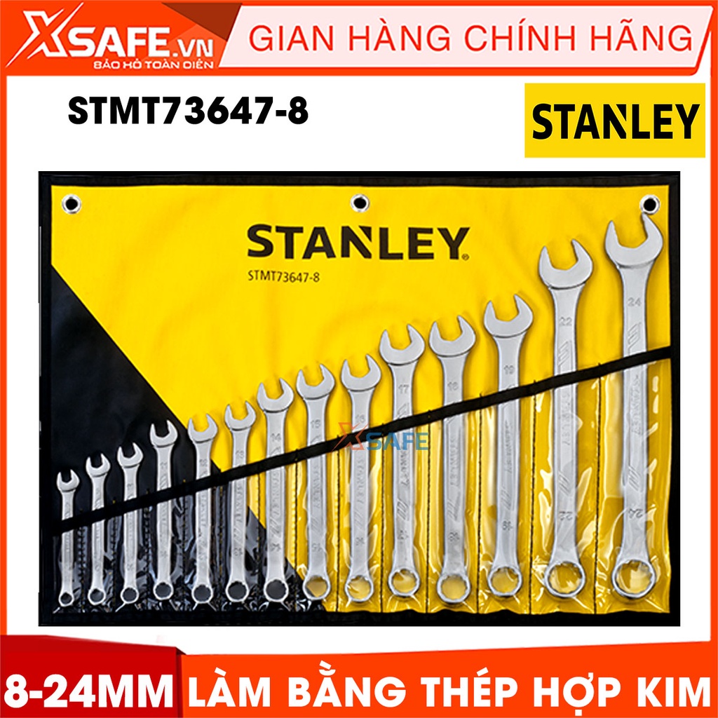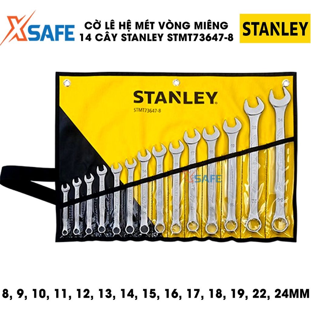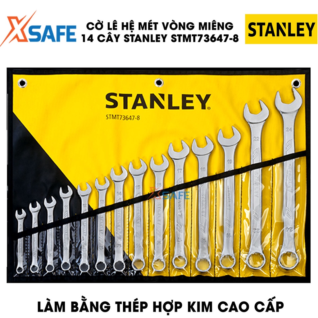 Cờ lê vòng miệng hệ MÉT STANLEY STMT73647-8 thép hợp kim cao cấp Bộ 14 cờ lê Stanley các size phổ biến, kèm túi đựng