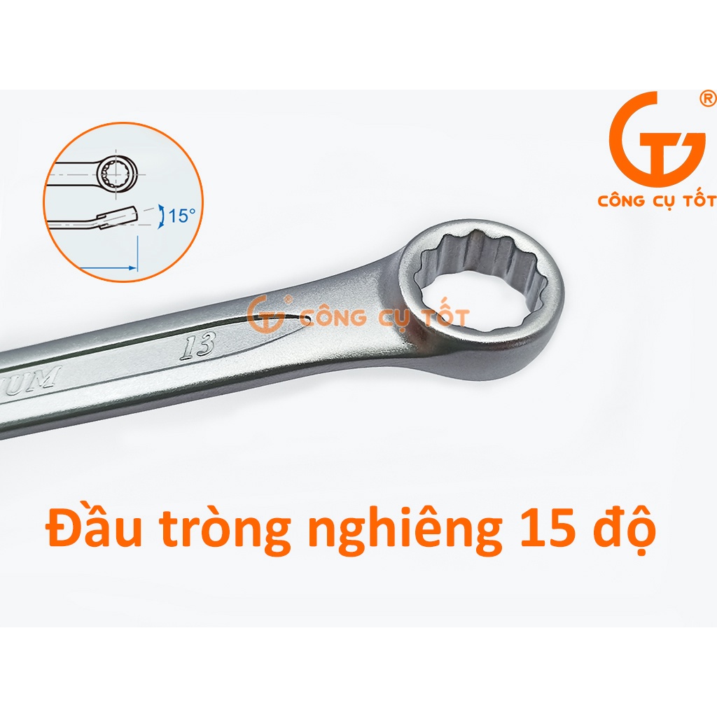 Chất liệu: Hợp kim thép Chrome-Vanadium độ cứng cao, nhẹ, chịu lực, chịu nhiệt, chống ăn mòn, ...Thiết kế một đầu chữ U và một đầu tròng cùng kích thước 13mm