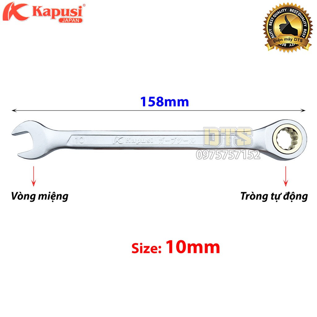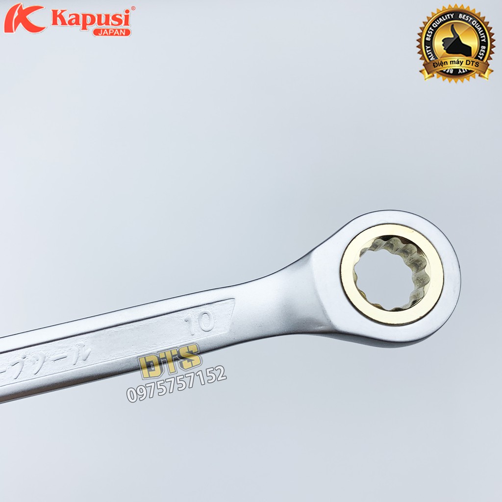 Cờ lê vòng miệng tự động 10mm Kapusi Japan, thép CR-V chịu lực cao 50BV30, bánh cóc 72 răng - Cờ lê tự động xoay 360 độ