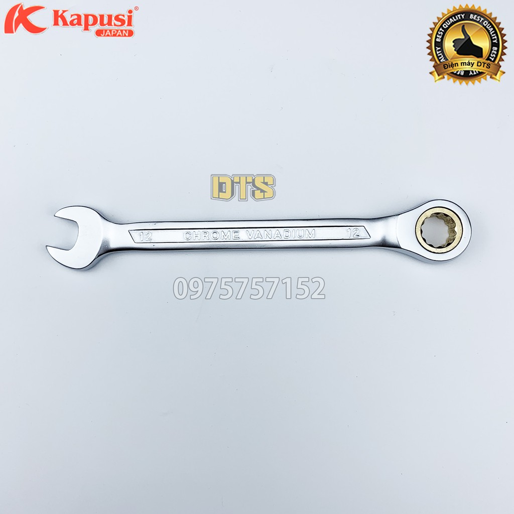 Cờ lê vòng miệng tự động 12mm Kapusi Japan, thép CR-V chịu lực cao 50BV30, bánh cóc 72 răng - Cờ lê tự động xoay 360 độ