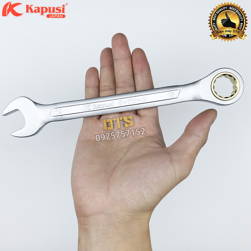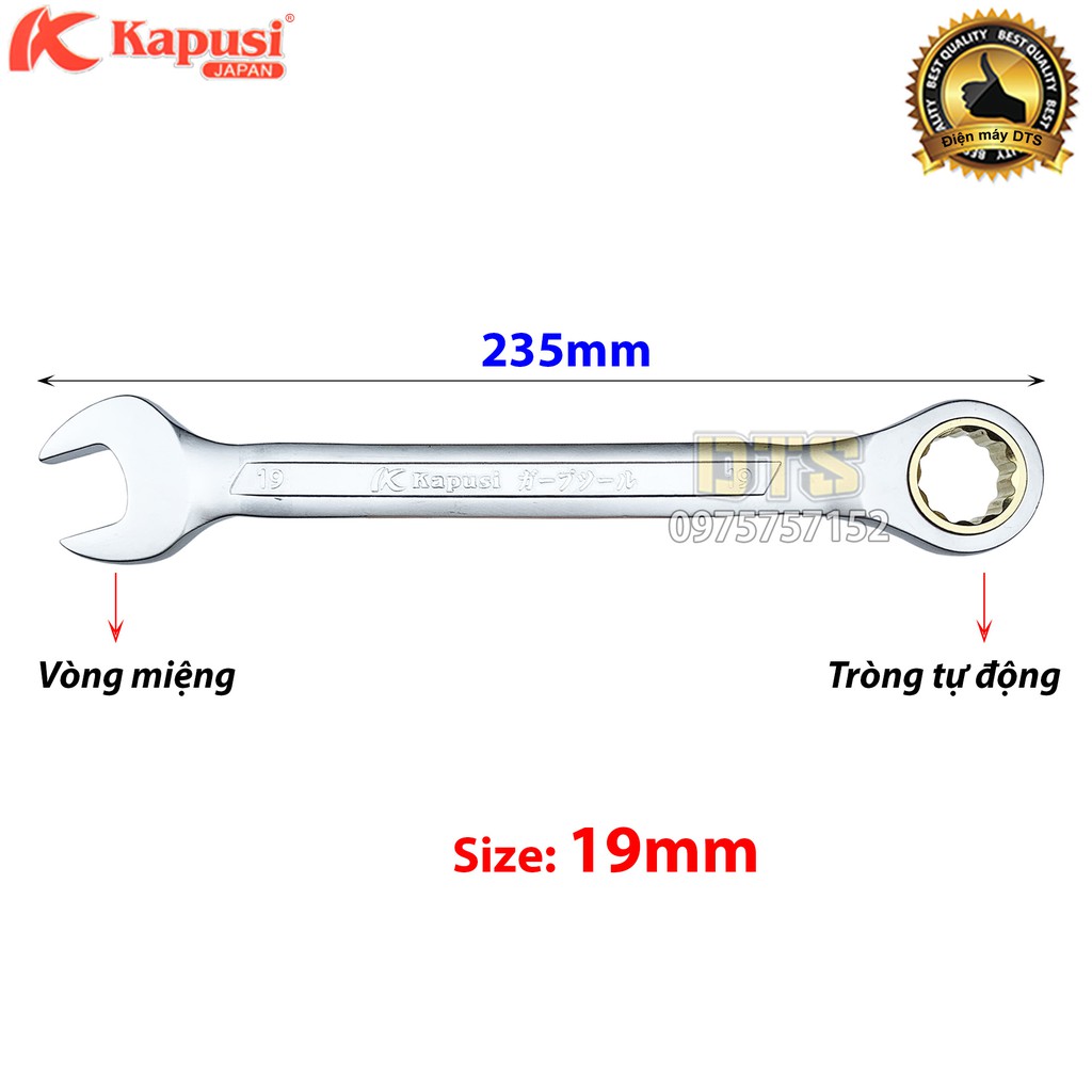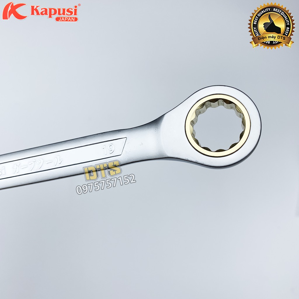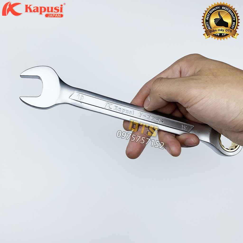 Cờ lê vòng miệng tự động 19mm Kapusi Japan, thép CR-V chịu lực cao 50BV30, bánh cóc 72 răng - Cờ lê tự động xoay 360 độ