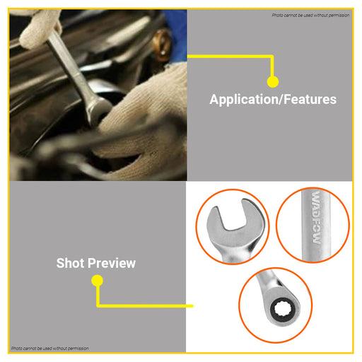 WSA5122 cờ lê vòng miệng tự động 22mm (ratchet wrench) của thương hiệu Wadfow. Đây là dụng cụ cầm tay chuyên dụng, kết hợp giữa một đầu miệng hở và một đầu vòng bánh cóc, giúp tăng tốc độ thao tác cho các loại bu lông và đai ốc cỡ 22mm.