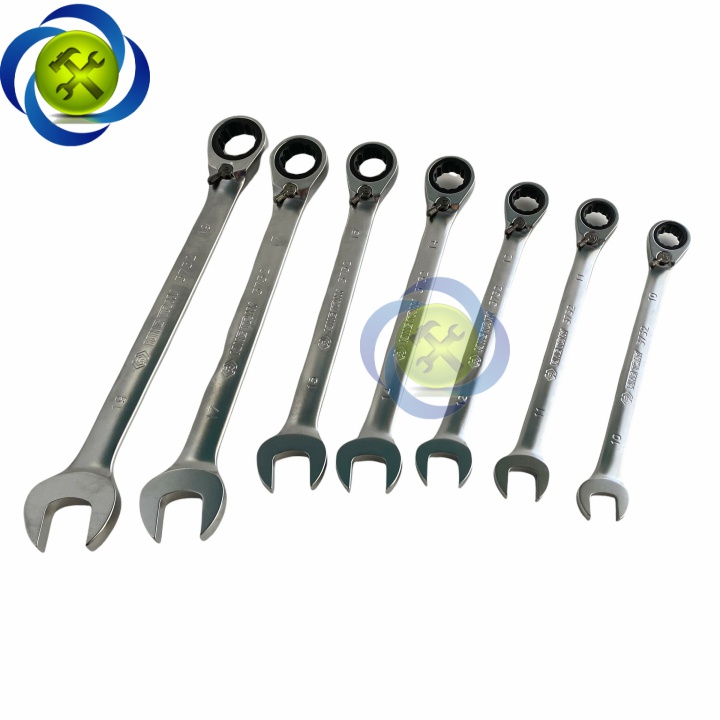 - Gồm 7 chiếc: 10, 11, 12, 14, 15, 17, 19 mm có khóa gạt đảo chiều