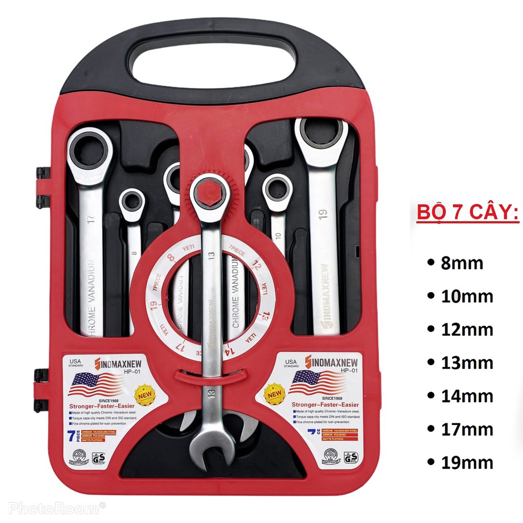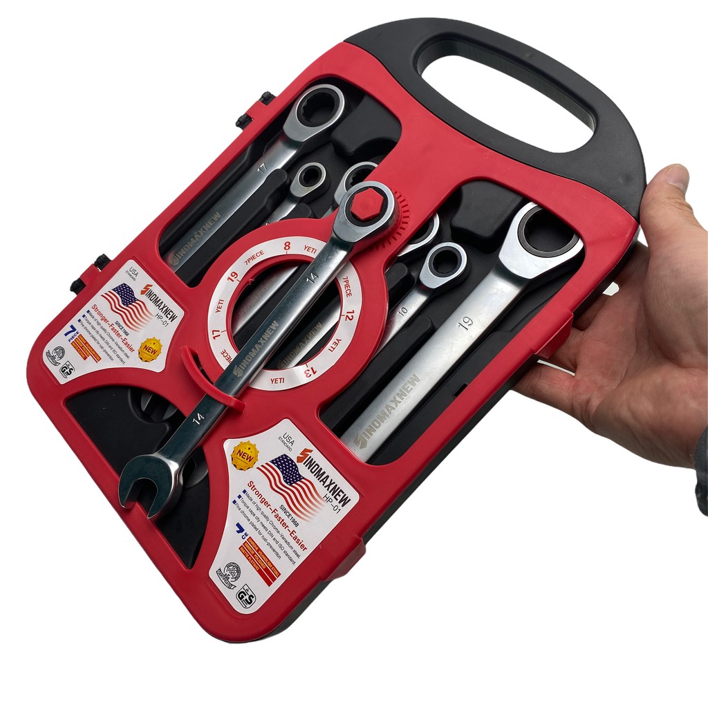 Bộ cờ lê vòng miệng tự động 7 chi tiết 8-19mm - hàng cao cấp, hoàn thiện tinh xảo, cơ chế siết tự động sử dụng linh hoạt