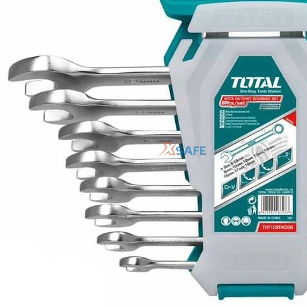 Bộ cờ lê vòng miệng tự động 8 chi tiết TOTAL THT102RK086 size 8-19mm Bộ 8 cờ lê 2 chiều dùng sửa chữa ô tô xe máy cơ khí