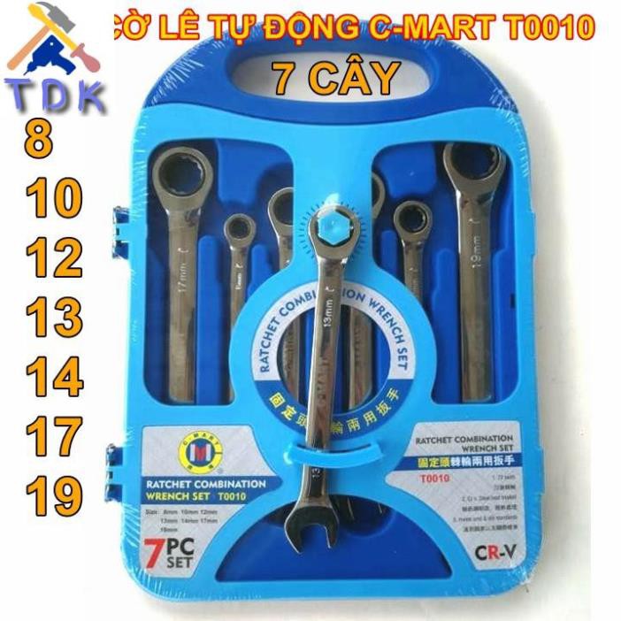 CHẤT LƯỢNG + UY TÍN TẠO NIỀM TINBộ cờ lê vòng miệng tự động C-mart T0010 7 cây tiện dụng, đáp ứng tốt nhu cầu sửa chữa máy móc thiết bị là dụng cụ cần thiết cho công việc của bạnĐẶC ĐIỂM : Bộ cờ lê vòng miệng tự động C-mart T0010 7 cây