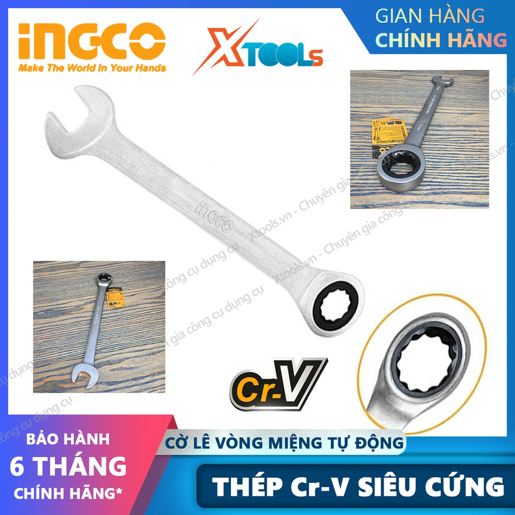Cờ lê vòng miệng tự động đa năng INGCO đủ kích cỡ, cờ lê lực lục giác chất liệu thép C-rV siêu bền cứng