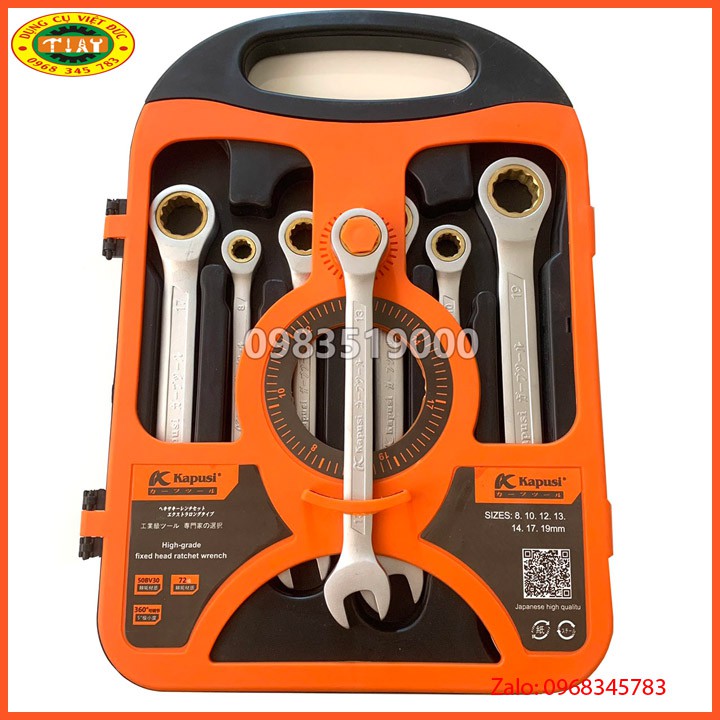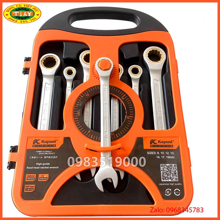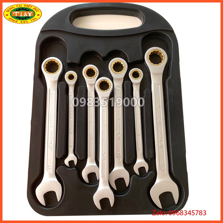Bộ cờ lê vòng miệng tự động đảo chiều hãng Kapusi Nhật Bản 7 chi tiết - Bộ cờ lê tròng cóc Kapusi (Bộ chìa khóa)