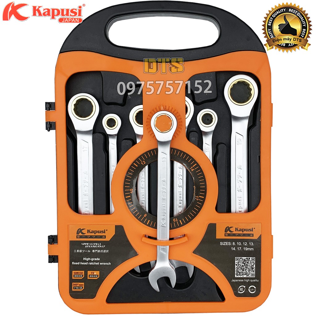 Cờ lê vòng miệng tự động Kapusi Japan nhiều size, thép CR-V chịu lực cao 50BV30, bánh cóc 72 răng - Cờ lê tự động 360 độ