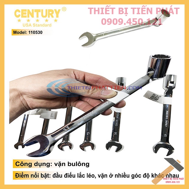 CỜ LÊ MIỆNG VÀ ĐIẾU LẮC LÉO CENTURY 8MM-19MM CAO CẤPCờ Lê Vòng Miệng Và Điếu Lắc Léo Cao Cấp CENTURY Full Size Số 8mm, 10mm, 12mm, 13mm, 14mm, 17mm, 19mm Chính Hãng