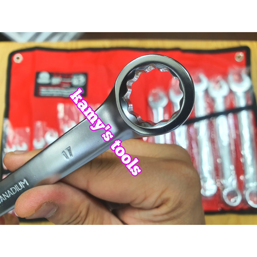 Kamy’s tools chuyên phân phối các loại cờ lê vòng miệng, vòng miệng, chìa khóa vòng miệng, bộ cờ lê vòng miệng, bộ chìa khóa vòng miệng, bộ vòng miệng, là một trong những dụng cụ cầm tay được sử dụng rất nhiều trong ngành công nghiệp cơ khí sửa chữa, ô tô cơ giới máy móc, xây dựng, nhà cửa gia đình sử dụng rộng rãi. Trong đó có bộ cờ lê vòng miệng yeti 14 cái 10-32mm nặng khoảng 2929g hay còn được gọi là bộ cờ lê vòng miệng yeti 10-32mm, bộ vòng miệng yeti 10-32mm, bộ chìa khóa vòng miệng yeti 10-32mm, bộ cờ lê yeti 10-32mm, là một cờ lê vòng miệng bao gồm các size thông dụng từ 10-32mm với thương hiệu yeti nổi tiếng gồm các size: 10mm 11mm 12mm 13mm 14mm 16mm 17mm 18mm 19mm 21mm 24mm 27mm 30mm 32mm. Bộ cờ lê vòng miệng yeti 14 cái 10-32mm nặng khoảng 2929g được thiết kế với một đầu vòng và một đầu miệng mở nên được gọi là bộ cờ vòng miệng được ưu tiên sử dụng rất nhiều so với các loại cờ lê khác. Bộ cờ lê vòng miệng yeti 14 cái 10-32mm nặng khoảng 2929g được chế tạo bằng hợp kim thép chrome vanadium có chất thép rất cứng được tôi luyện qua nhiều quá trình giúp cho độ cứng trở nên rất cứng có thể sử dụng để tháo mở các bu lông đai ốc rất cứng như các loại đai ốc bị gỉ sét qua nhiều thời gian năm tháng nên rất cứng. Bộ cờ lê vòng miệng yeti 14 cái 10-32mm nặng khoảng 2929g có thể dùng búa đóng vào nhưng không thay đổi, không móp méo như những loại có chất lượng thép không tốt sẽ bị quát. Vì trên thị trường có rất nhiều loại từ nhiều nguồn sản xuất khác nhau nên shop có chụp hình trọng lượng của mỗi bộ cờ lê ước tính rơi vào khoảng 1792g, mỗi bộ có thể sẽ có trọng lượng khác nhau hay bằng nhau nhưng trọng lượng sẽ không chênh lệch quá nhiều để khách hàng có thể phân biệt được loại đủ chất lượng để sử dụng chứ không bị thiếu số kg. hãy liên hệ với kamy’s tools để biết thông tin chi tiết sản phẩm bộ cờ lê vòng miệng yeti 14 cái 10-32mm nặng khoảng 2929g.CHÚ Ý: trọng lượng của mỗi bộ có thể giống nhau hay chênh lệch sẽ không quá cao.