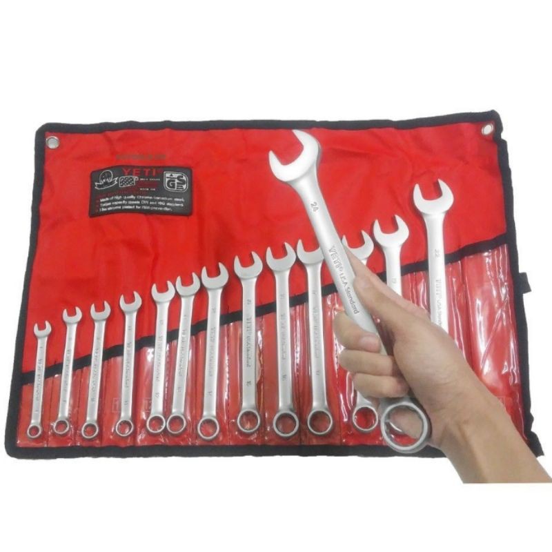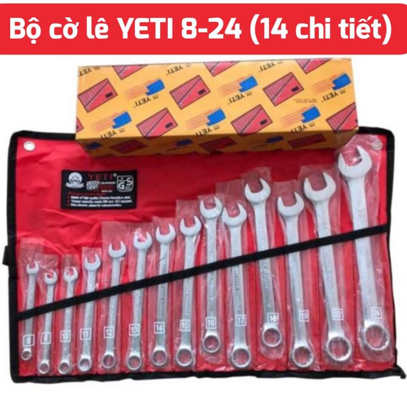 Nhà cửa & Đời sống > Dụng cụ & Thiết bị tiện ích > Dụng cụ > Bộ cờ lê || Bộ cờ lê (vòng miệng) YETI 14 cây tiêu chuẩn USA 8mm-24mmCòn hàng
