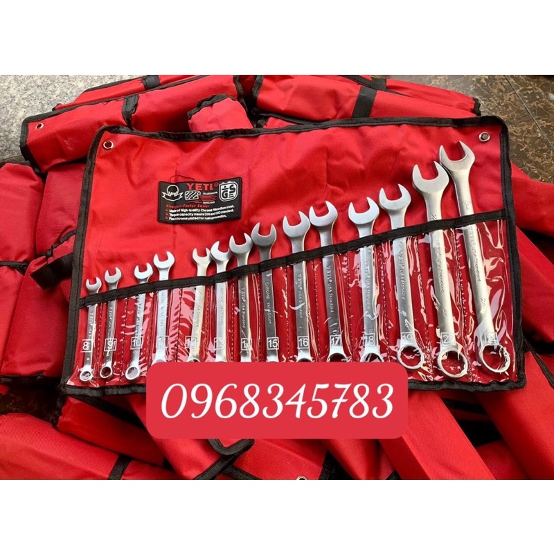 Cờ lê Yeti USA 14 chi tiết (8-24mm) và (10-32mm) khoá vòng miệngBộ khóa vòng miệng Yeti 14 món: 8,9,10, 11, 12, 13, 14, 15(16),17,18, 19,21, 22, 24 mm dạng 1 đầu hở 1 đầu tròn