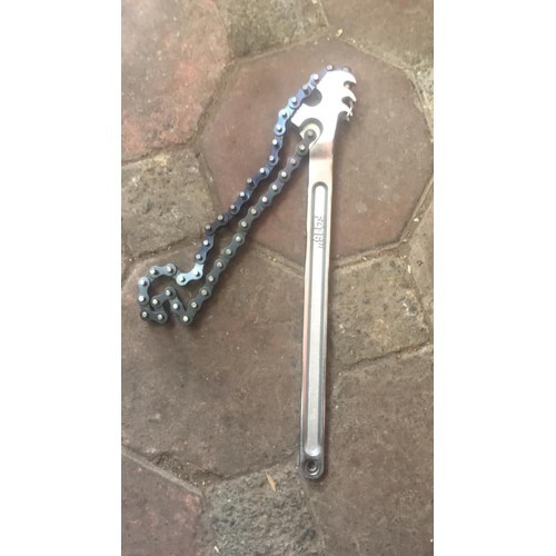 Dụng cụ có thiết kế chuyên dụng, tiêu chuẩn với một đoạn xích ở đầu cờ lê giúp tăng lực vặn, hỗ trợ bạn tối đa trong việc thực hiện công việc được nhanh chóng. Tay cầm chắc chắn, vừa vặn, tạo cảm giác thoải mái cũng như đảm bảo an toàn khi sử dụng.