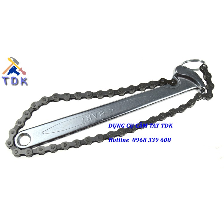 - Dây xích được chế tạo bằng thép tốt, và được phủ lớp xi đen, chống gỉ sét. VÌ dây xích có những đường cong uốn lượn liên tục, nên nhà sản xuất đã lựa chọn dây xích để có sự bám chặc vào chi tiết cần mở và chịu được lực siết cao.