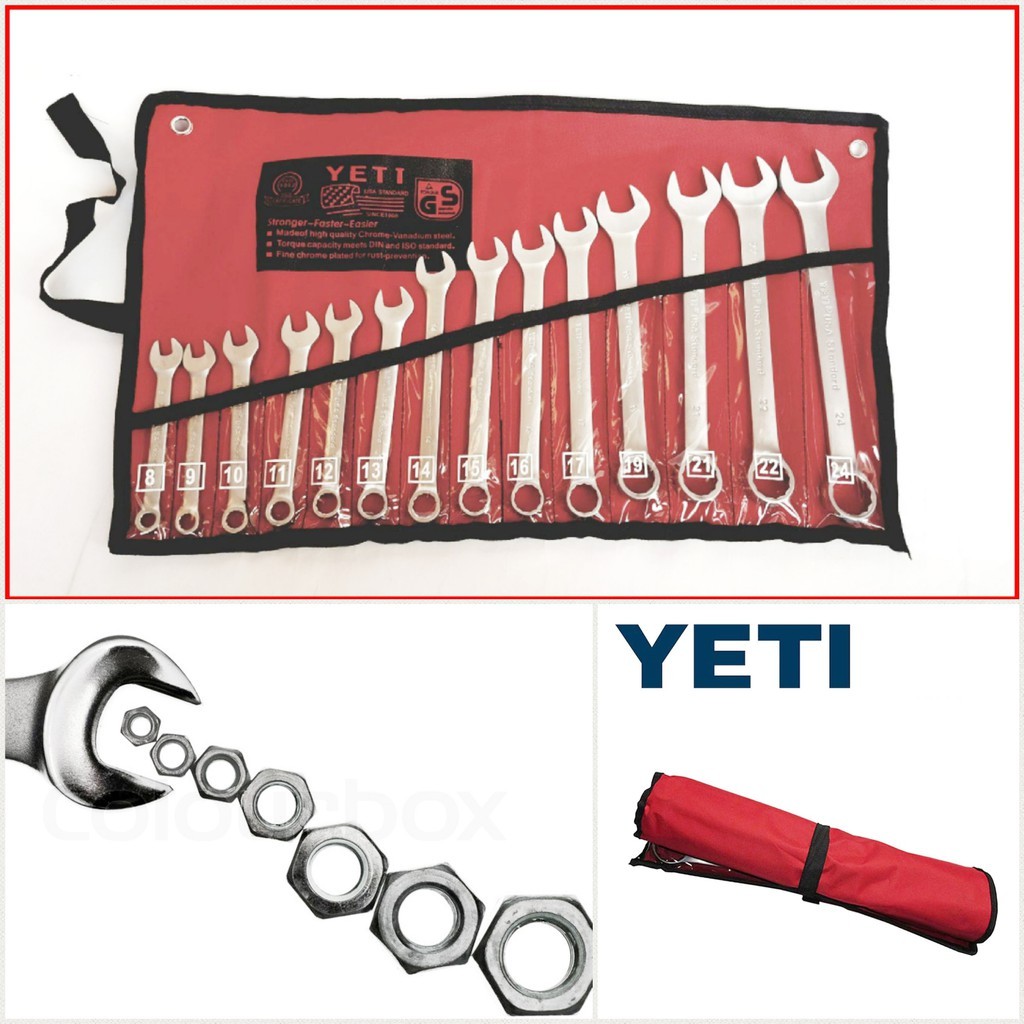 Giới thiệu Bộ cờ lê Yeti 14 chi tiết (8-24mm): 8; 9; 10; 11; 12; 13; 14; 15; 16; 17; 19; 21; 22; 24mm