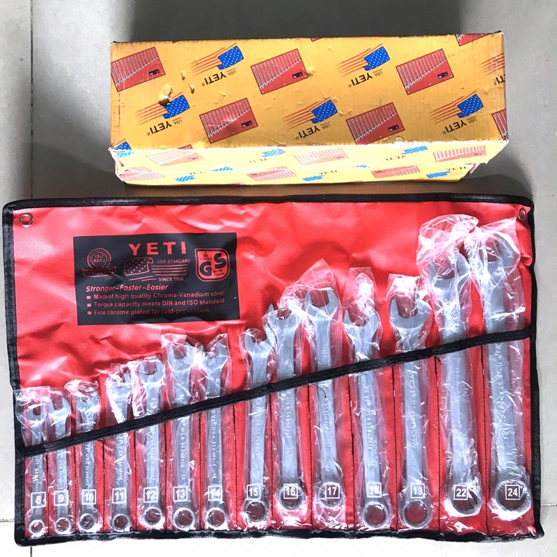 Nhà cửa & Đời sống > Dụng cụ & Thiết bị tiện ích > Dụng cụ > Bộ cờ lê || Bộ Cờ Lê Yeti USA 14 Chi Tiết 8-24 ( khoá vòng miệng)Còn hàng