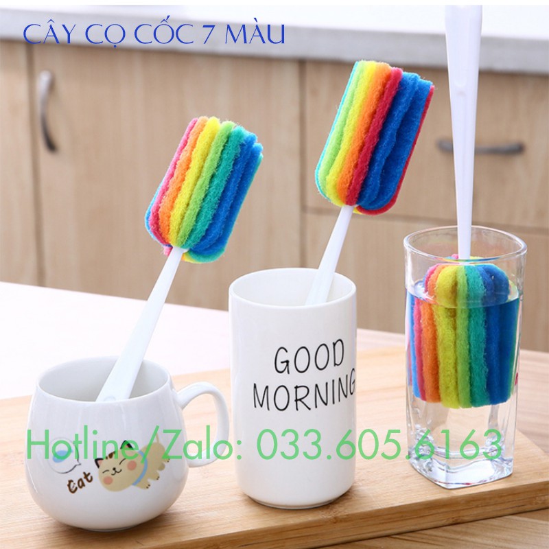 Cọ ly cọ cốc rửa bình sữa 7 màu bằng bọt biển cứng