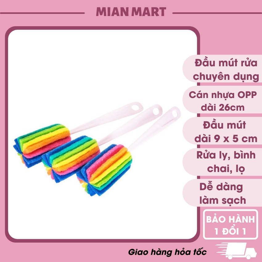 - Chất liệu đầu mút xốp mềm mại không gây xước ly chén, tay cầm nhựa dài dễ thao tác vệ sinh những đồ dùng như cốc cao thành, bình nhựa,...