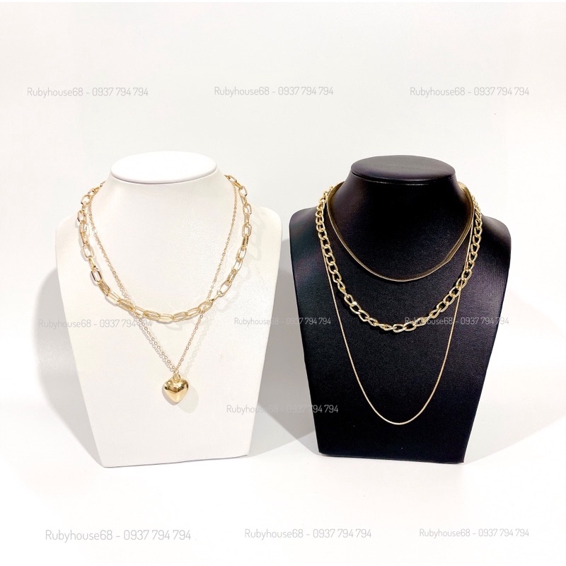 - 2 mà đen & trắng , các shop nên lấy 2 màu để dễ trưng dây nha . Cổ đen phù hợp dây bạc , vàng , đá màu , cổ trắng giúp tôn các mẫu dây choker đen , dây xi màu, ....
