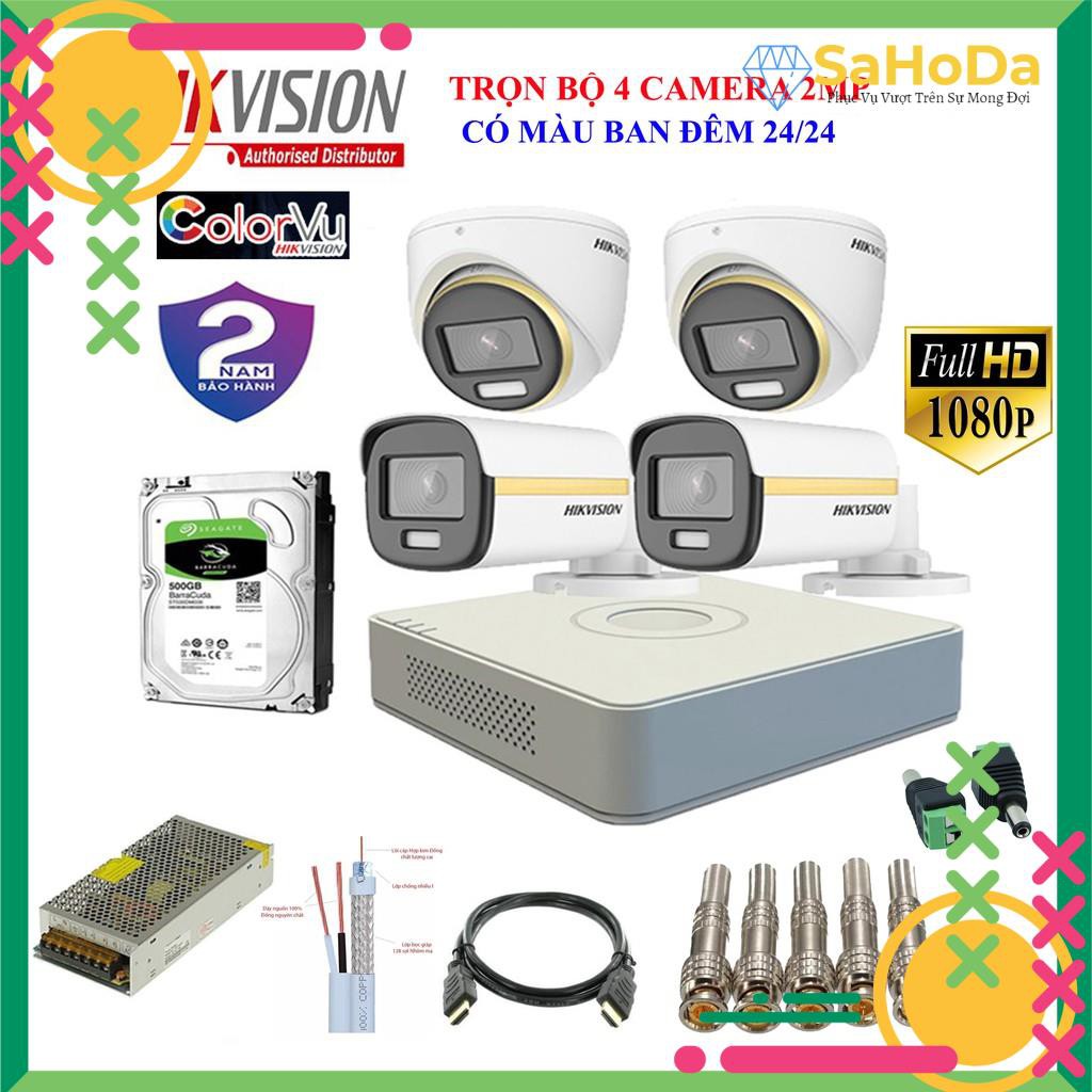 {CÓ MÀU 24/24} Trọn bộ 1/2/3/4 Camera Hikvision chính hãng có màu ban đêm full HD, đầy đủ phụ kiện chỉ việc lắm