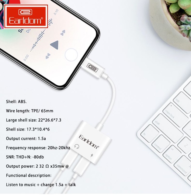 [CÓ MIC CHUYÊN PUBG] Jack chia 2 cổng lightning vừa sạc vừa nghe OT-33 hàng chính hãng Earldom