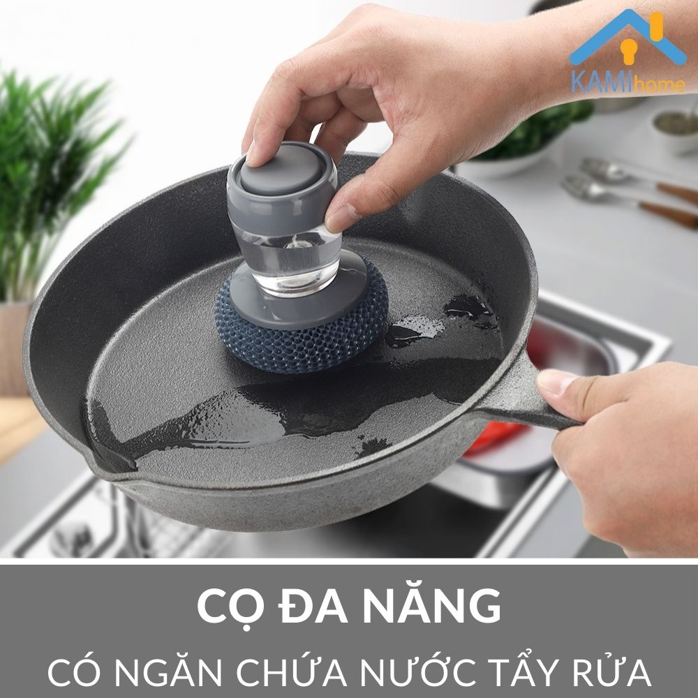 Cọ nhà bếp đa năng có bơm chất tẩy rửa tự động chuyên dùng cho lau chùi Đồ nhà bếp (Nồi Chảo Bát Đĩa, Bếp từ, Bếp gas); Bồn rửa tay, Bồn rửa bát; Nhà tắm; Các đồ gỗ, Thủy tinh, Sứ...Điểm đặc biệt: Tích hợp bình chứa chất tẩy rửa lỏng thuận tiện cho người sử dụng.