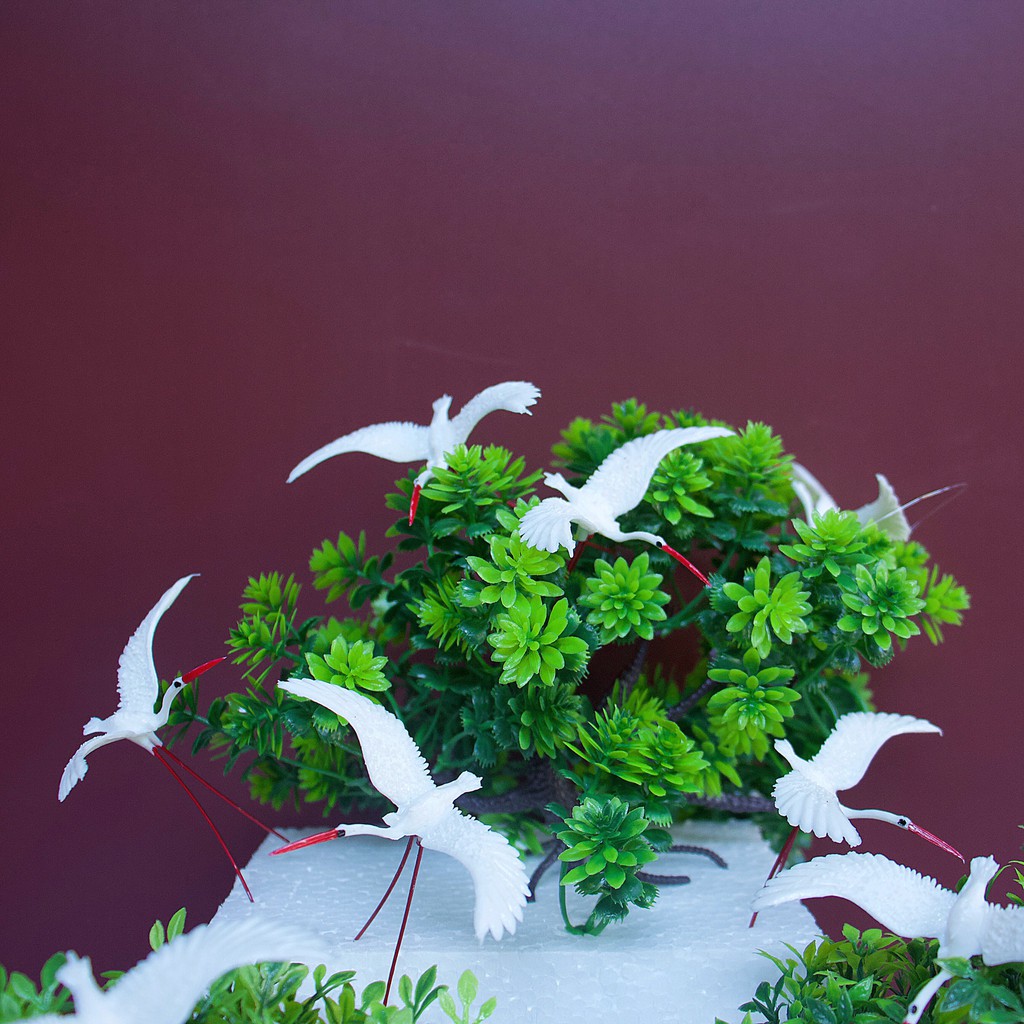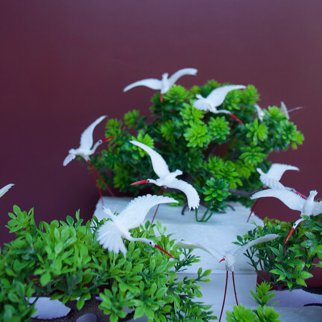 - Mô hình cò mini là phụ kiện không thể thiếu khi trang trí các tiểu cảnh như hòn non bộ, thác phong thủy trong nhà